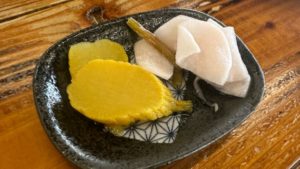 私の家では、食事には必ず漬物が添えられています。