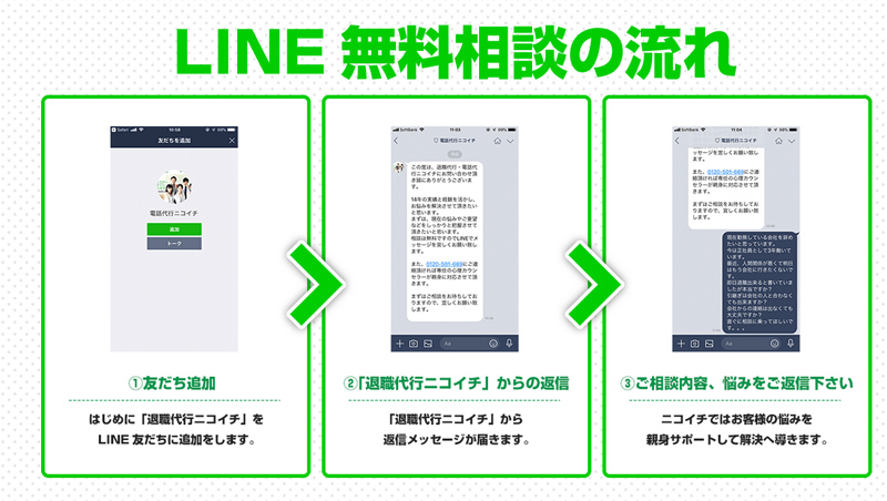 LINEでのやり取りが可能なため、仕事中でも周囲に知られることなく相談しやすいのがポイントです。